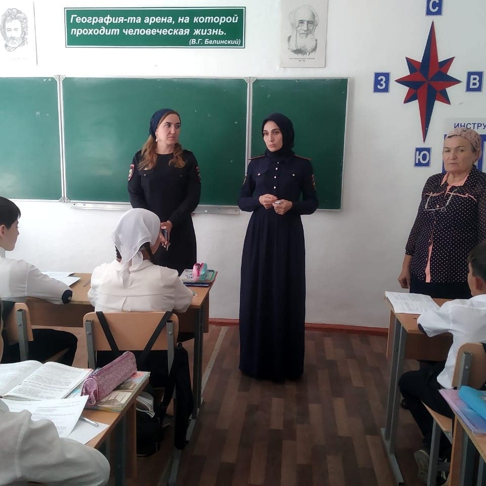 23.09.2019Профилактическая беседа с участием инспекторов ОПДН МВД по Надтеречному району с учащимися 6 класса. В беседе освещались вопросы об административной и уголовной ответственности несовершеннолетних за совершения преступлений и правонарушений.