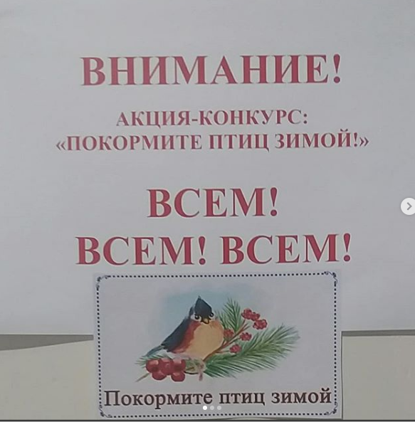 В МБОУ "СОШ #2 с.п. Надтеречное" с 14 октября по 25 ноября 2019 года проводится акция-конкурс "Покормите птиц зимой!"