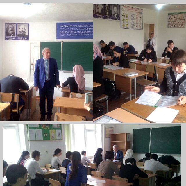 Идет пробный экзамен по русскому языку (ЕГЭ, ДВ-2015) в 10-х и 11-х классах МБОУ«СОШ№ 2 с.п. Надтеречное; учитель высшей категории Джабраилов У.К.