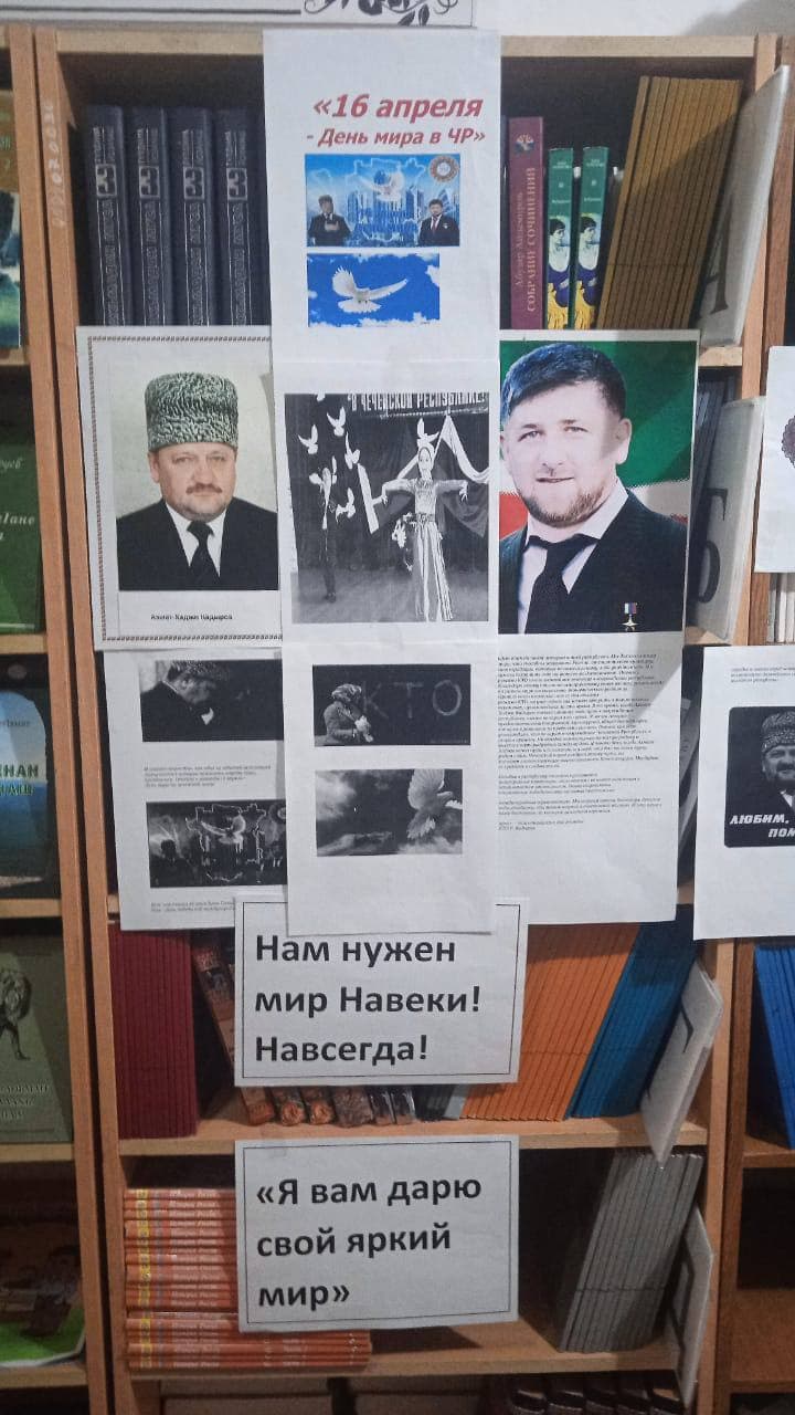 В школьной библиотеке МБОУ " СОШ 2 с. п. Надтеречное" Организована выставка посвящённая Дню - 16 - апреля День Мира Чеченской Республики Отмена КТО