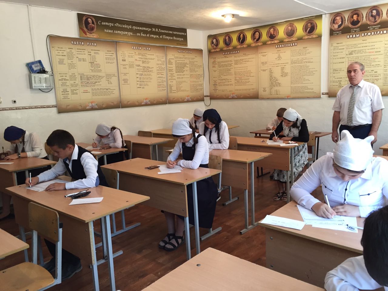 Джабраилов У.К. на базе МБОУ "СОШ №2 с. п. Надтеречное" проводит районную независимую диагностику по русскому языку.
