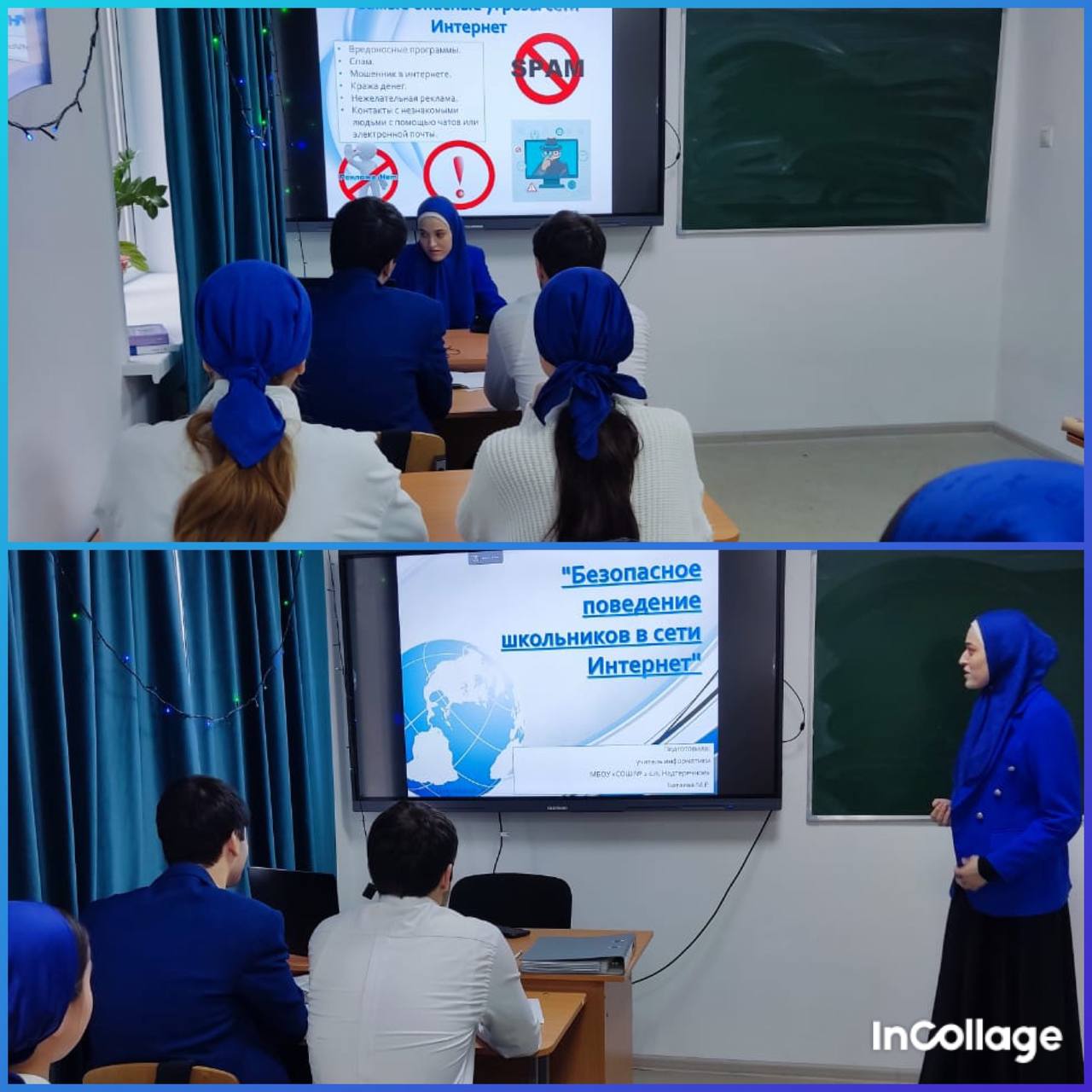 14.12.2023г. в МБОУ «СОШ 2 с.п. Надтеречное» учитель информатики провела урок в 11 классе на тему: «Безопасное поведение школьников в сети Интернет». Целью мероприятия являлось обратить внимание учащихся на возможные угрозы в сети Интернет, повысить грамотность учащихся в вопросах безопасности в сети, формировать общепринятые нормы поведения в сети.