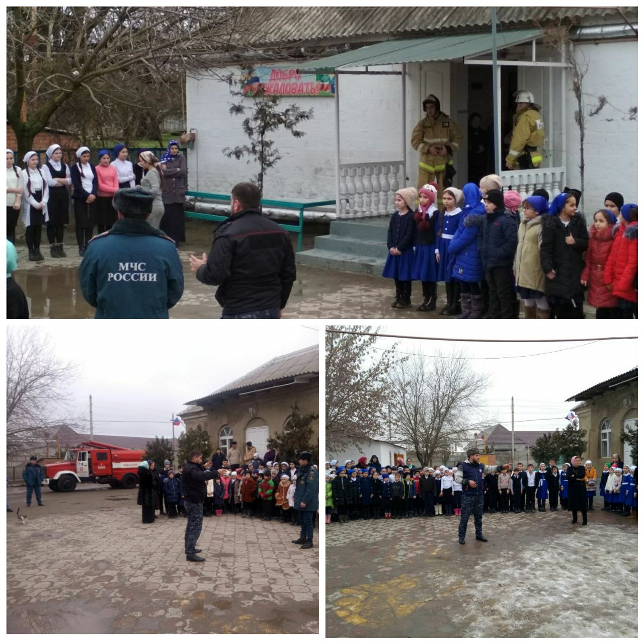 Эвакуация проводилась с целью совершенствования знаний и практических навыков учащихся и сотрудников школы действовать в условиях чрезвычайных ситуаций. Сотрудники пожарно-спасательной части, заместитель директора школы по безопасности У.К. Джабраилов и педагог-организатор ОБЖ Сагаипов А.А. провели беседу с школьниками и персоналом ОУ по мерам безопасности при ЧС и рассказали, как вести себя в случае возникновения пожара и правильно пользоваться первичными средствами пожаротушения.