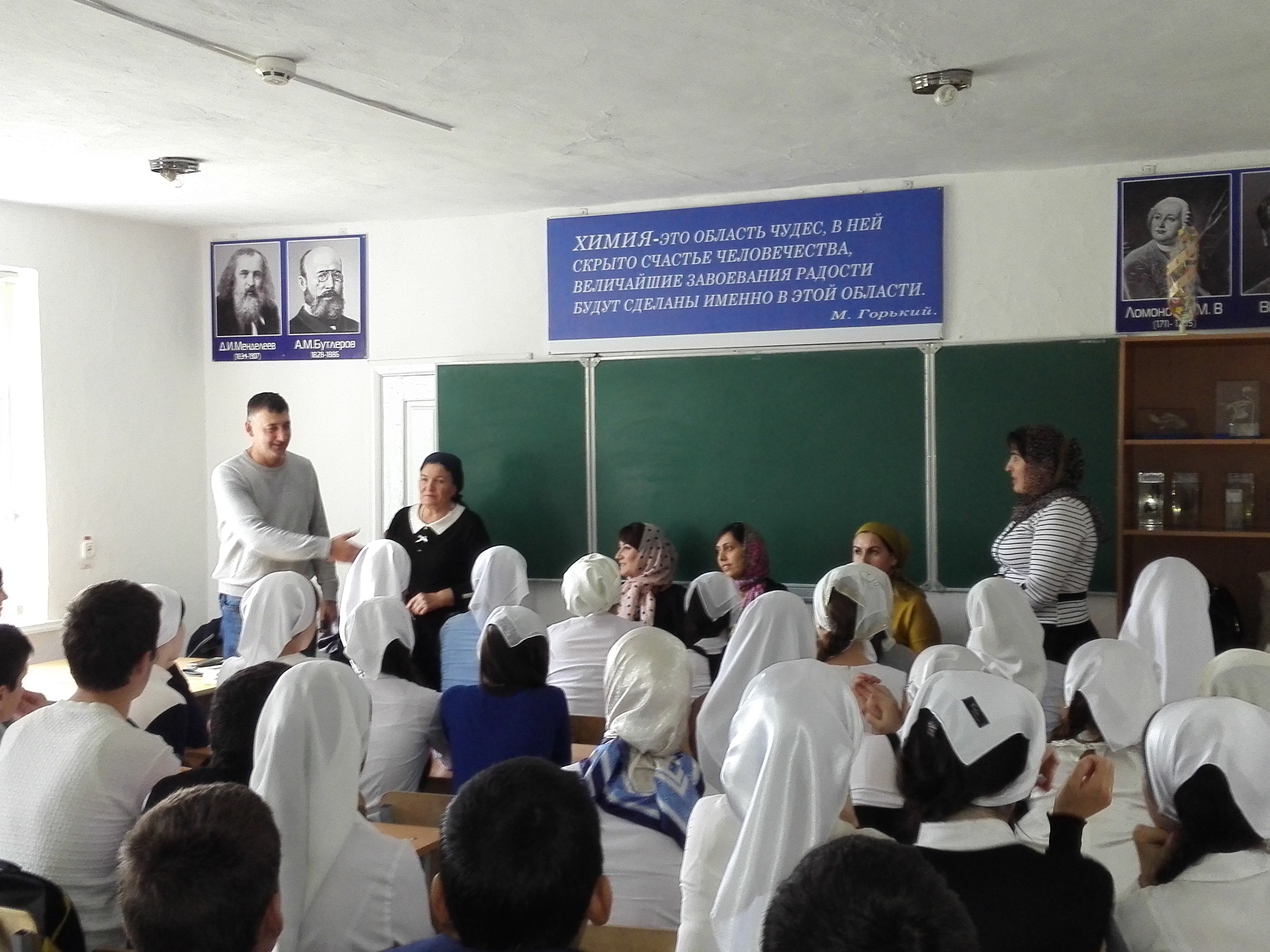 В организации и проведения мероприятия приняли участие представители Министерства ЧР по делам молодежи, Министерства образования и науки ЧР, республиканского центра по профилактике и борьбе со СПИД, ГБУ ДО «РЦРТД и Ю», Управления кинематографии ЧР и центра социальной реабилитации подростков «Феникс».В ходе своего выступления перед учащимися помощник министра ЧР по делам молодежи Мовла Гайраханов рассказал о выдающихся жителях села Надтеречное, которые внесли неоценимый вклад в историю чеченского народа. «Это авлия Усман-Хаджи и Кана, герой Великой Отечественной войны Мовлади Висаитов, политолог Абдурахман Авторханов, писатели Арби и Эдуард Мамакаевы и многие другие. Эти люди являли собой пример достоинства и чести, мужества и отваги, разума и мудрости, истинного служения и беззаветной любви к Родине. Их потомки и односельчане должны брать пример с этих людей. Каждый юноша ответственен не только за себя, он должен болеть душой за весь народ, стремиться искоренять недостатки, свои и чужие, стремиться к справедливости при любых обстоятельствах», - сказал М. Гайраханов.Психологи республиканского центра по профилактике и борьбе со СПИД Залина Абдулкадырова и Тамила Умаева рассказали об эпидемиологической ситуации на территории республики, необходимых мерах для сохранения здоровья.